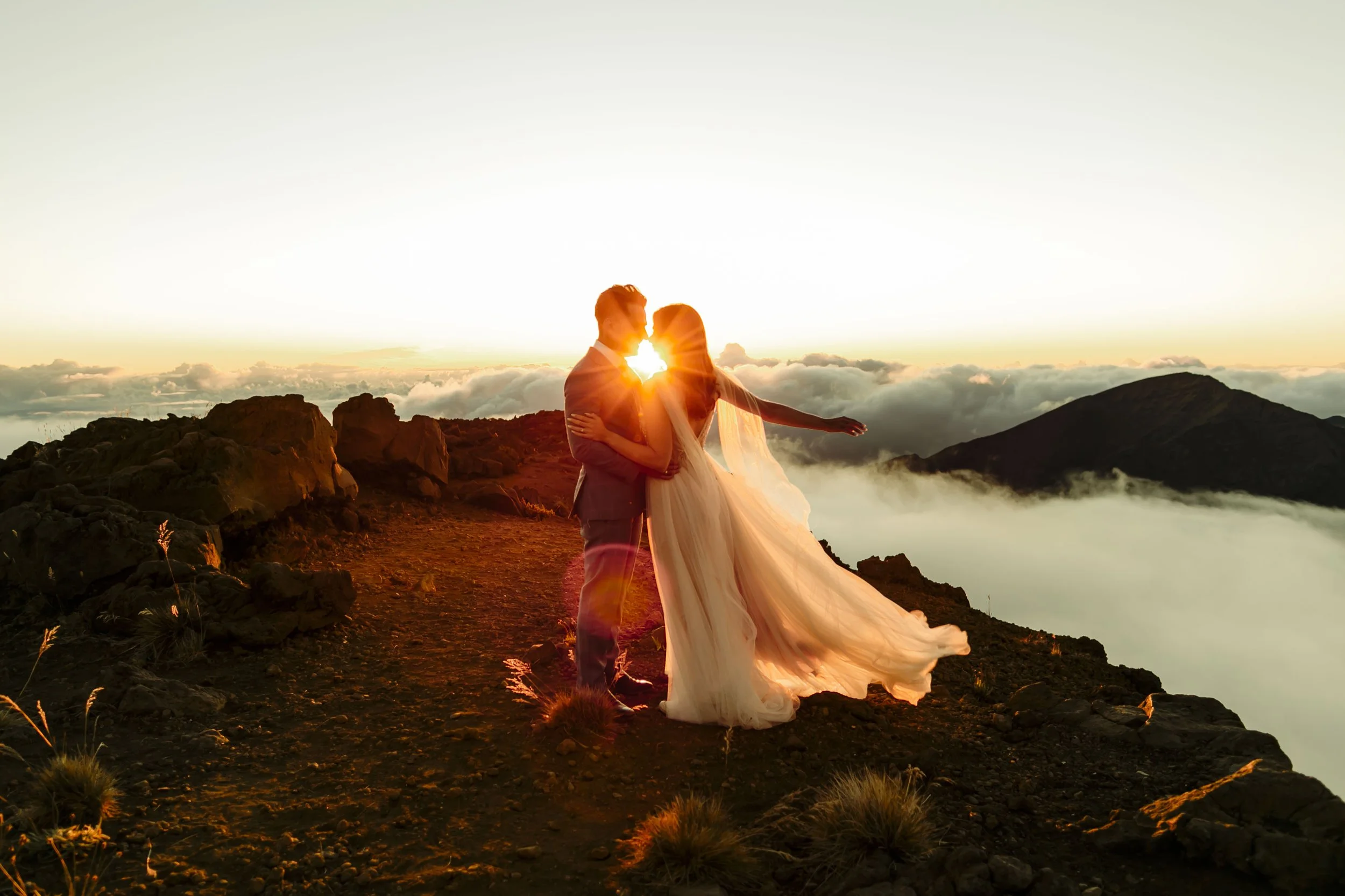 Averi and Bruno eloped at the top of Maui’s stunning Haleakala Summit. It was a chilly morning, covered in fog and gorgeous sunlight. After we trekked through jungle-like trees at Honolua Bay and jumped in the water to end the epic day with drone and underwater photography!
